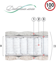 Двусторонний пружинный матрас Коралл с эффектом «зима-лето» из серии «Люкс» от производителя Велам1. Чехол стеганый на наполнителе «Sprut», ткань - жаккард (1)*3. Материал нетканый «Thermofelt» (3)4. Пружинный блок «Pocket Spring» (2)5. Материал нетканый «Thermofelt» (3)7. Чехол стеганый на наполнителе «Sprut», ткань - жаккард (1)Высота матраса: 23 смНагрузка: 100 кгЖесткость: среднемягкийРазмеры: 80(90,140,160,180)*190(200) см* Цифры в скобках соответствуют обозначениям на фото